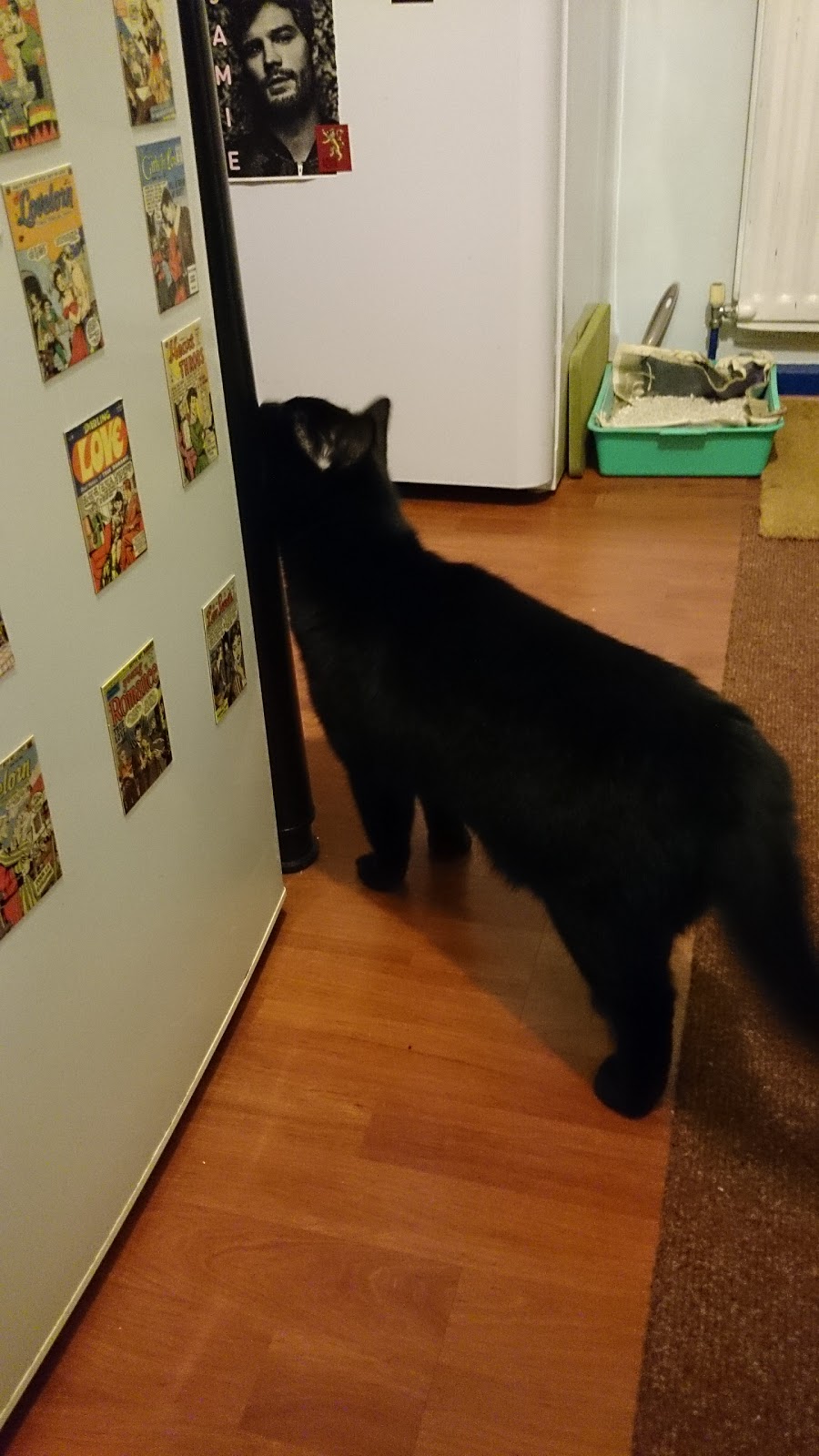 My houemate and I were in the kitchen, she was making her tea and I was having a cup of coffee, when the cat flap went and in strolled 'Niteszche'.